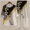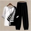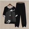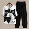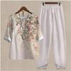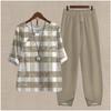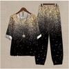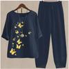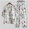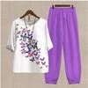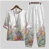 Frühlings-Zweiteiler für Damen mit Fünfviertelärmeln und bedruckter Oberteil- und Hose