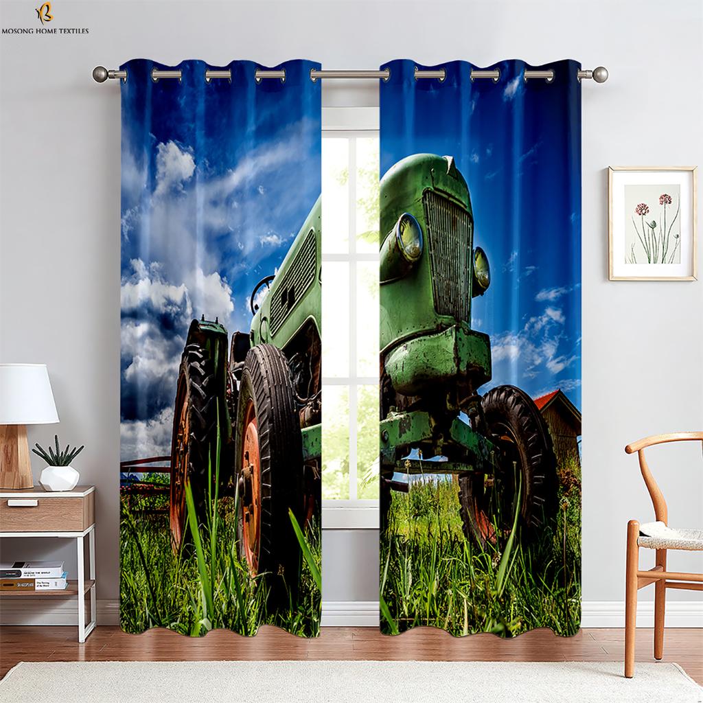 Bauernhof Traktor 3D Stereo Druck Vorhang Schlafzimmer Wohnzimmer Küche Dekorativer Vorhang Polyesterfaser Maschinenwaschbar 2 Stück