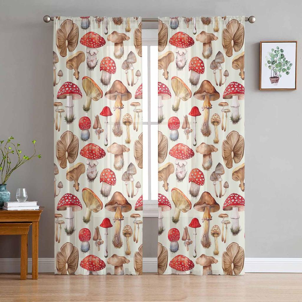 Pilzpflanze Retro Transparente Vorhänge zur Wohnzimmerdekoration Fenstergardinen für die Küche Tüll Voile Organza Vorhänge