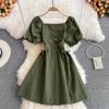 YYFS Damenmode Sommer Frühling Einfarbiger Druck Kurzarm Quadratischer Kragen Hohe Taille Freizeitkleider