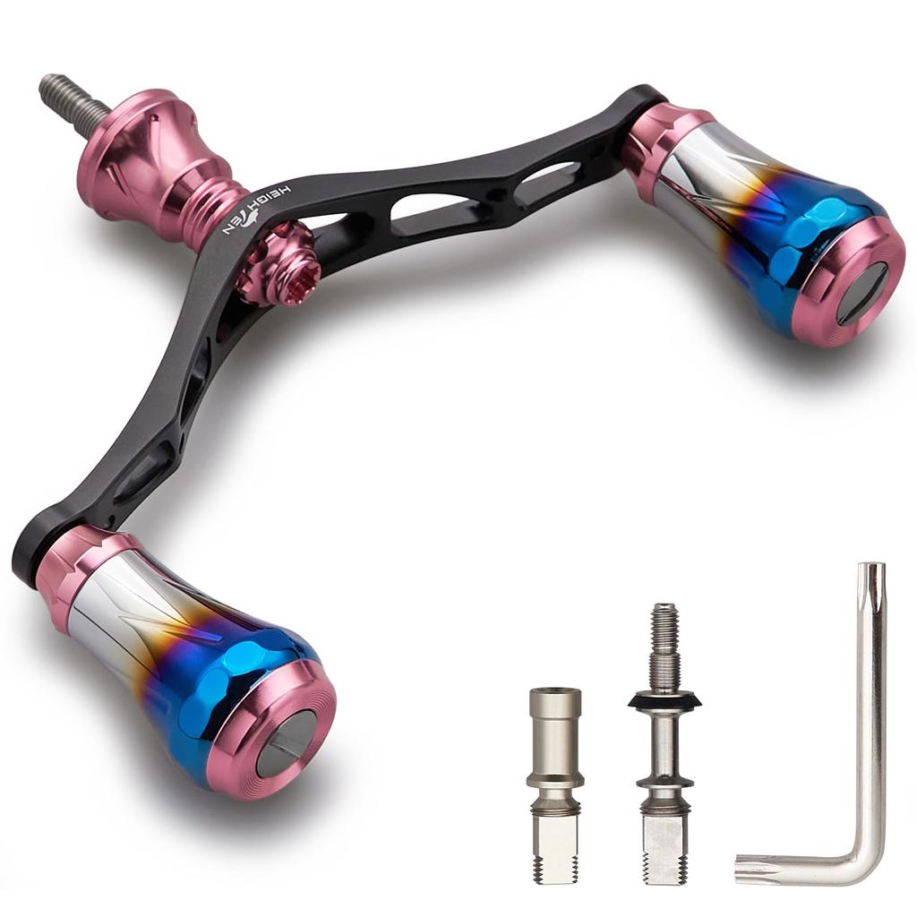 HEIGHTEN 95mm Reel Handle 8 Colors for Shimano Daiwa General Spinning Reel 70 Aviation Aluminum Aurora Series (PinkBlack) (179)