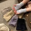 Gestrickte Halbfingerhandschuhe für Damen, Niedliche Winter-Fingerlose Halbfingerhandschuhe für Schülerinnen, Plüsch-Warme Handschuhe zum Schreiben