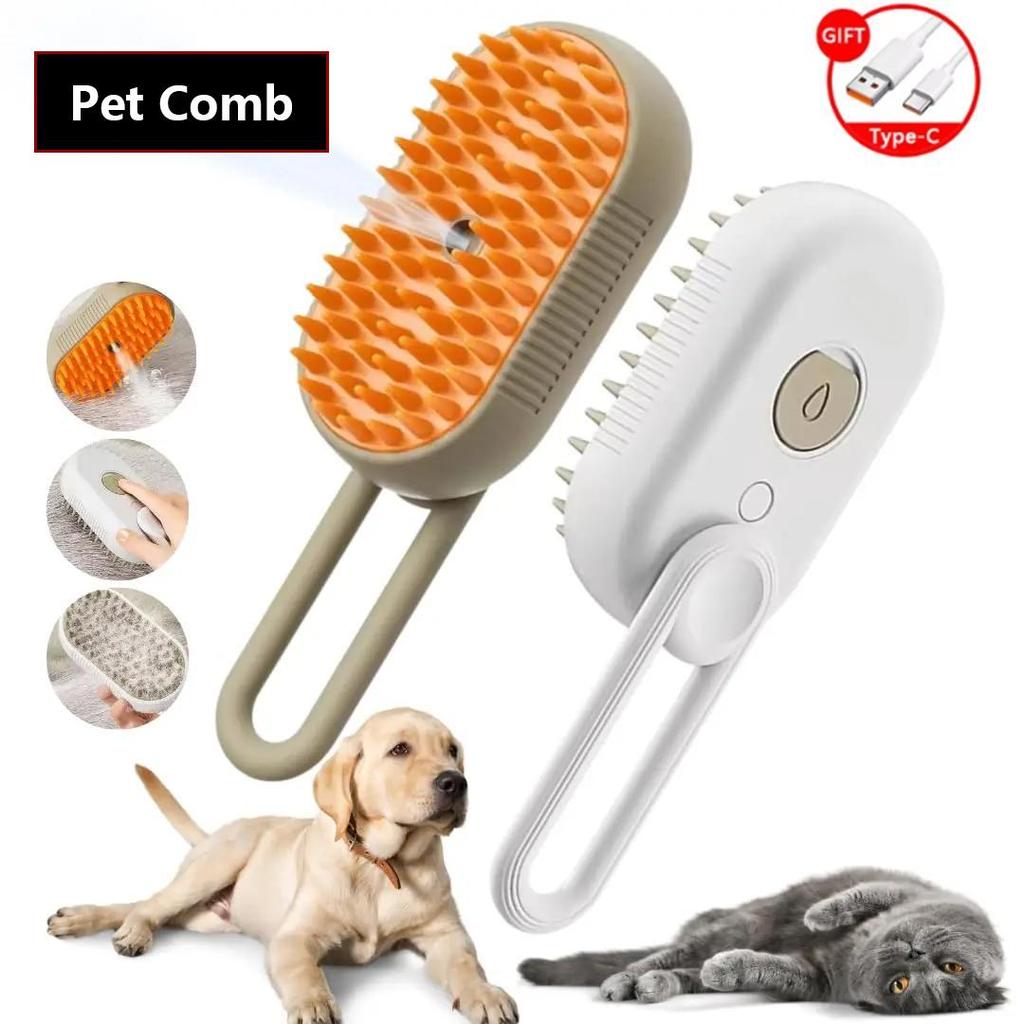 Wiederaufladbare 4-in-1-Dampfhaarentfernungsbürste für Katzen und Hunde, Katzenbürste, antistatische Dampfbürste für Haustiere, Massage-Reinigungsspray, Haarentfernungsbürste