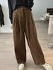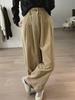 Johnature Einfache Damen Frühling Herbst Lockere Cordhosen Lässig Weitbein Gerade Elastische Taille Hose