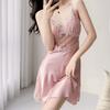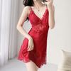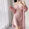 Seidenbademäntel für Damen, sexy Spitzenunterwäsche mit tiefem V-Ausschnitt und rückenfreiem Design, gepolstertes Nachtwäsche-Kleiderset mit Bindegürtel für zu Hause