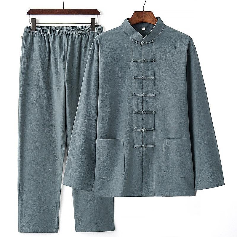 Tang-Anzug Herrenanzug Frühling und Herbst Zweiteiliger Anzug Chinesischer Stil Antikes Kostüm Chinesischer Hanfu Laienanzug