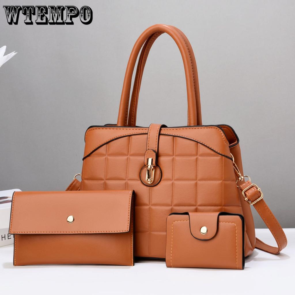 WTEMPO Einfarbige Handtaschen mit großem Fassungsvermögen Lässige Umhängetaschen Dreiteiliges Set Vielseitige Damen Einfache Schultertasche
