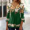 Damenmode, lässig, Sommer, Frühling, Blumenmuster, Druck, 3/4-Ärmel, V-Ausschnitt, Blusen und Hemden