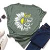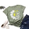 Damen Locker Rundhals Chrysanthemen-Buchstaben Reine Baumwolle Kurzarm T-Shirts Damen