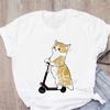 Summer Plus Print Lazy Cat Cartoon Loose Half Sleeved Base Shirt Round Neck Pure Cotton T-Shirts Women’s