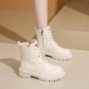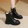 Warme Kurze Plüsch Pu Leder Stiefeletten Frauen Herbst Winter Plattform Kampfstiefel Frau Dicke Sohle Reißverschluss Schnürung Botas Mujer