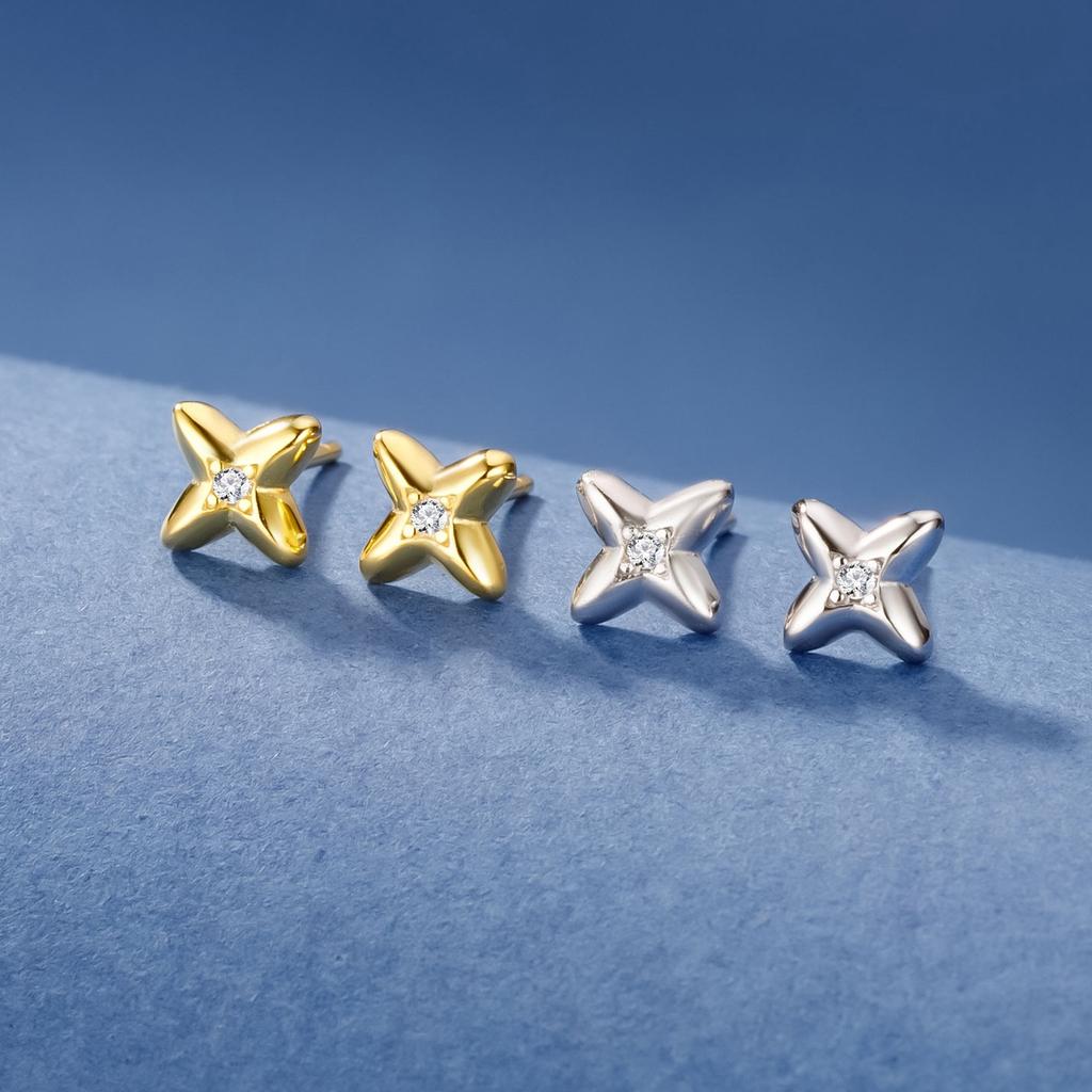 S925 Sterlingsilber Kleeblatt-Ohrstecker, Hochwertige Exquisite Oktagramm-Ohrringe, Leichter Luxus Temperament Vierzackstern-Ohrringe.