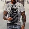 3D Printing 2025 New Year Snake Year Fierce Men's Casual Short Sleeve T-shirt Comfortable Breathable Retro Printed Short Sleeve