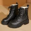 Winter Warme Kurze Plüsch Stiefeletten Damen Mode Doppelter Reißverschluss Plateau Kampfstiefel Frau Bequem Schnürung PU Leder Botas Mujer