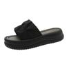 Dicksohlige Plissee-Slipper für Damen Schuhe 2024 Sommer Neu Koreanischer Stil Damen Lässige Pantoletten Frau Runde Zehen Keil Strand-Sandalen