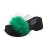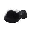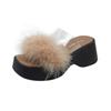 Heiß verkaufte flauschige Wildleder-Cool-Hausschuhe 2024, neue Muffin-Hausschuhe mit dickem Boden und hohen Absätzen, Kunstfell, Ein-Wort-Drag-Girl