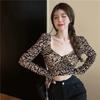 Oberteil mit Leopardenmuster Langarm Slim Fit Kurze Crop-Tops Damen Koreanisch Skinny Slim Unterhemd Babes Nische T-Shirt Y2k Tee