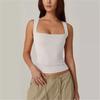 Sommer Damen Rundhals Ärmellos Doppellagiges Weste Basic Skinny T-Shirt