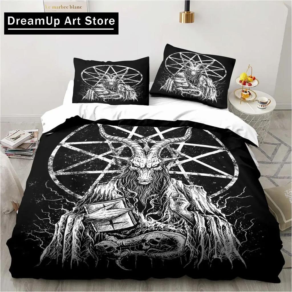 Baphomet Satan Demon Evil Christmas Navidad Bedding Set Boys Girls Twin Queen Full Size Duvet Cover Pillowcase Bed Adult