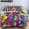 Comic Muster Bettbezug Queen King Cartoon Bettwäsche Set für Kinder Jungen Mädchen Hippie Hip Hop Rock Stil Polyester Bettdeckenbezug