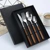 4-teiliges Geschirrset aus 304 Edelstahl, glänzend silberfarben, aus Holz, Geschirr für westliche Speisen, Messer, Gabel, Teelöffel, Besteck