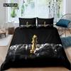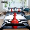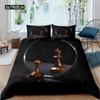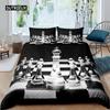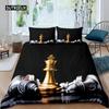 Bettbezug-Set mit internationalem Schachmotiv, Queen-Size-Bettwäscheset für Schachliebhaber, für Kinder und Erwachsene, Mikrofaser, schwarze Basis, 2/3-teiliger Bettbezug