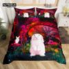 Niedliches Kaninchen Bettbezug Set Twin Queen Buntes Blumen Bettwäsche Set Mikrofaser Botanisch Floral Cartoon Tier Bettdeckenbezug