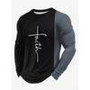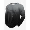 Spring And Summer Casual Men's Round Neck Long Sleeve T Shirt Cross Printed Solid Color Patchwork Long Sleeve Fashion Men's
