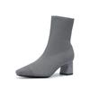 Socken-Stiefeletten für Damen, niedriger, klobiger Blockabsatz, dehnbare Slip-on-Booties, bequeme Chelsea-Stiefel aus elastischem Strick mit quadratischer Zehenpartie für Damen