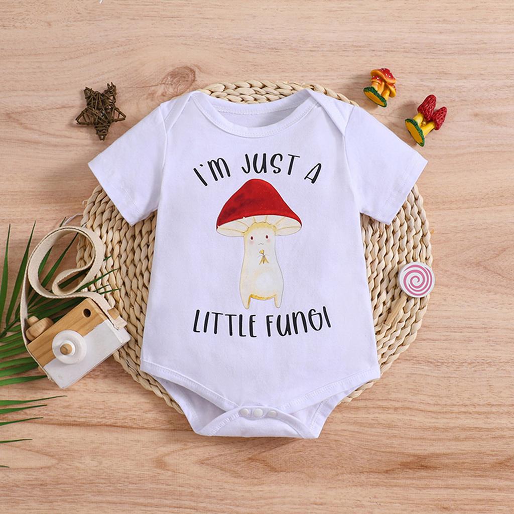 Neugeborenes Baby Baumwoll-Jumpsuit "Ich bin nur ein kleiner Pilz" Druck Kurzarm Strampler Body