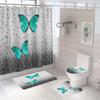 4-teiliges Set mit Schmetterlingen, wasserdichter und waschbarer Duschvorhang und Badematte, Badezimmer-Duschvorhang