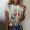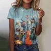 Damen T-Shirts Zeichentrickfiguren 3D Druck Rosen T-Shirt Harajuku Lässig Kurzarm Top Tee O-Ausschnitt Übergroße Damenbekleidung