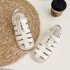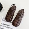 Hohle Damenschuhe 2024 Neue Sommer Einfache Kreuzgewebte Flache Absätze Sandalen Römisch Retro Geschlossene Zehenpartie Schnürung Mode Sandalen Damen