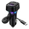 Auto Schnelllader mit Spiralkabel, Atmosphärenlicht, Zigarettenanzünder-Konverter, PD 30W, 3 Ausgänge, 12V-24V für Mobiltelefon, Kamera