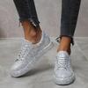 2025 Frühlings-Schnürschuhe mit Pailletten: Damen-Freizeitschuhe mit runder Zehenpartie und niedrigem Schaft