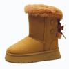Dicke Sohle Hoher Schaft Schneestiefel mit Schleife und Wildlederfell für Wärme
