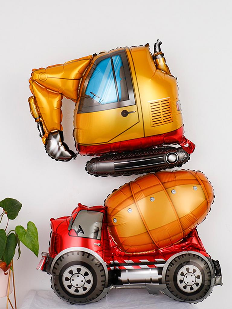 4-teiliges Baustellen-Ballon-Set, einschließlich Bagger-, Gabelstapler-, Mischtruck-Folienballons, Baustellen-Geburtstagsthemenparty