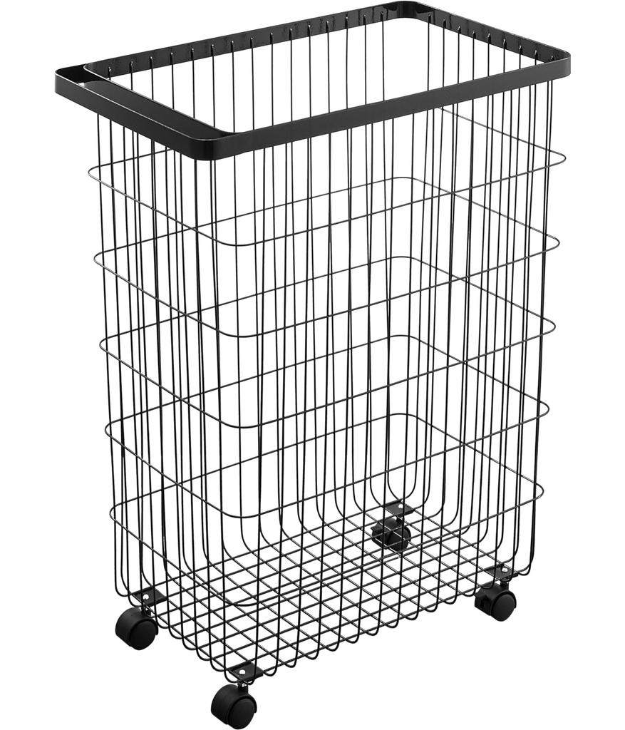 Yamazaki Jitsugyo Wäschekorb mit Rollen, Schwarz, ca.. Wäschekorb Tower, 28 x 46,5 x 61 cm, großes Fassungsvermögen, 4777
