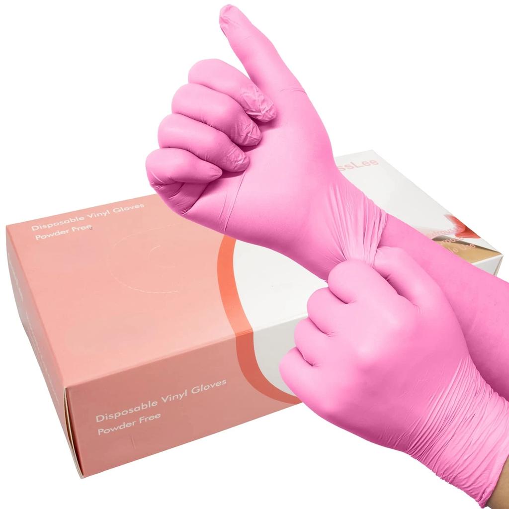 100 Stück Rosa Vinyl Einweg-Handschuhe - Latexfrei und Puderfrei Lebensmittelqualität Untersuchungshandschuhe für Reinigung Lebensmittelzubereitung Küchengebrauch