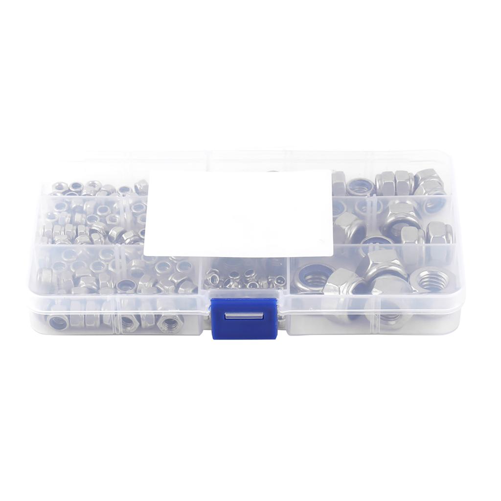 165-teiliges Kontermuttern-Sortiment aus Edelstahl SS304 mit Nyloneinsatz, M3, M4, M5, M6, M8, M10, M12