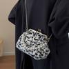 Samt Kette Umhängetaschen für Damen Reißverschluss Schultertaschen Perlenbesetzte Runde Tasche Hochwertiges Design Neue Mode