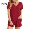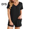 2 Teile/satz Damen Sommer Pyjama Anzug V-Ausschnitt Kurzarm Nachtwäsche Set Homewear Top Shorts Set Lose Shorts Set Lässiges Sport Outfit