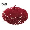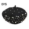 Baskenmütze für Damen, Kunstperlen, Strass-Dekor, Vintage-Wollmütze im englischen Stil, ohne Krempe, einfarbig, verstellbare Träger, Kürbismütze