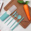 Carrying Box Chopsticks Simple Spoon Fork Reusable Wheat Straw Tableware Picnic Cutlery Set Portable Travel