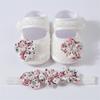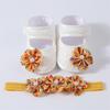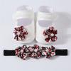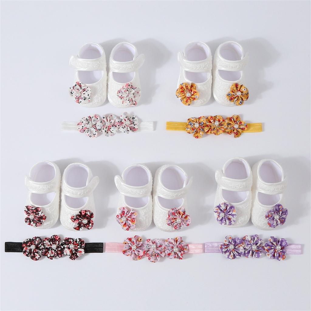 Baby-Set mit Blumenperlenschleife, Stickerei und Klebepunkten für Kleinkinder, Schuhe und Haarband
