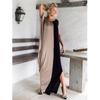 Damen West Rundhals Kurzarm Lose Patchwork Modekleid