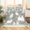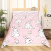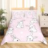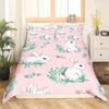 Rabbit Print Kids Girls King Queen Duvet Cover Cartoon Pink Little Bunny Comforter Cover Animal Floral Polyester Bedding Set