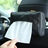 Einfarbig Kariert Leder Verschleißfest Taschentuchbox Autositzlehne Sonnenschutz Hängende Taschentuch-Tasche Schnallenriemen Einfache Installation