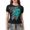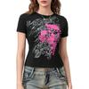 Women Short Sleeve T-Shirts Skull Print Crew Neck Shirts Summer Casual Slim Fit Tops Streetwear