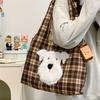 Große, vielseitige karierte Tragetasche für Damen, Herbst, niedliches Dackel-Motiv, Schultertasche für Studentinnen, Schultertasche